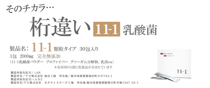 11-1 は 東京大学薬学部が長年の調査研究中、長野県で代々受け継がれた「ぬか床」から発見した新規の発酵菌で、想像を超えるチカラが宿っていたことから、さらなる研究を重ね商品化されたものです。